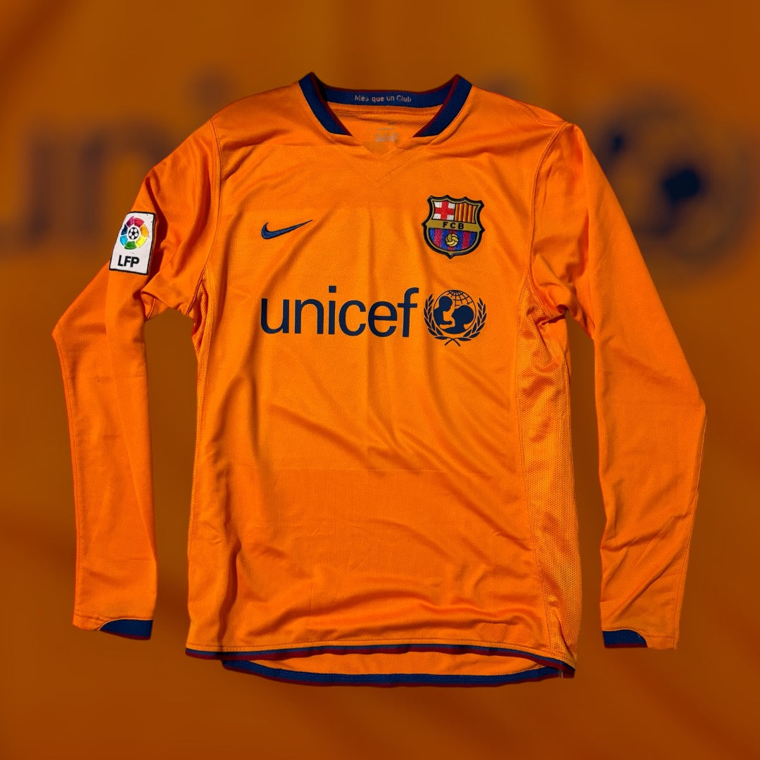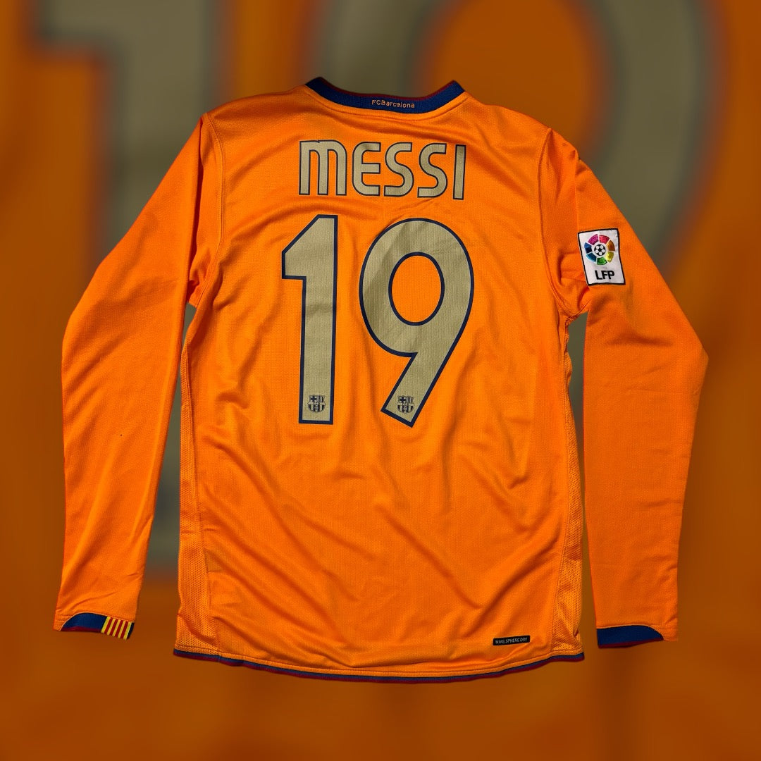 This bright orange long-sleeved jesrsey is from Messi's early years as an established first team member. Messi had an incredible season as a 19 year old. he scored 17 goals and had 3 assist in 36 appearances.